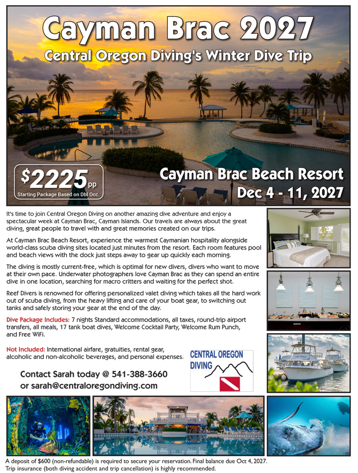 It’s time to join Central Oregon Diving for another amazing dive adventure as we head to the spectacular Cayman Brac in the Cayman Islands. Our trips are always centered around world-class diving, great people, and unforgettable memories. Experience the warmest Caymanian hospitality just minutes away from some of the best dive sites in the Caribbean.